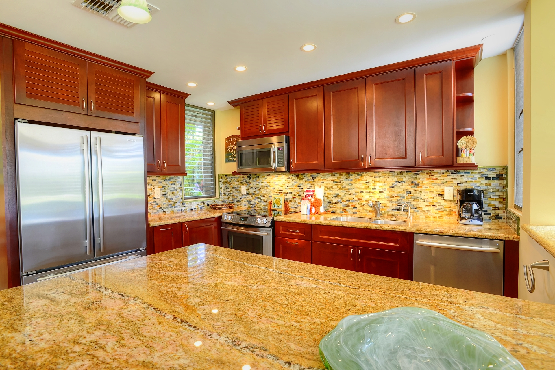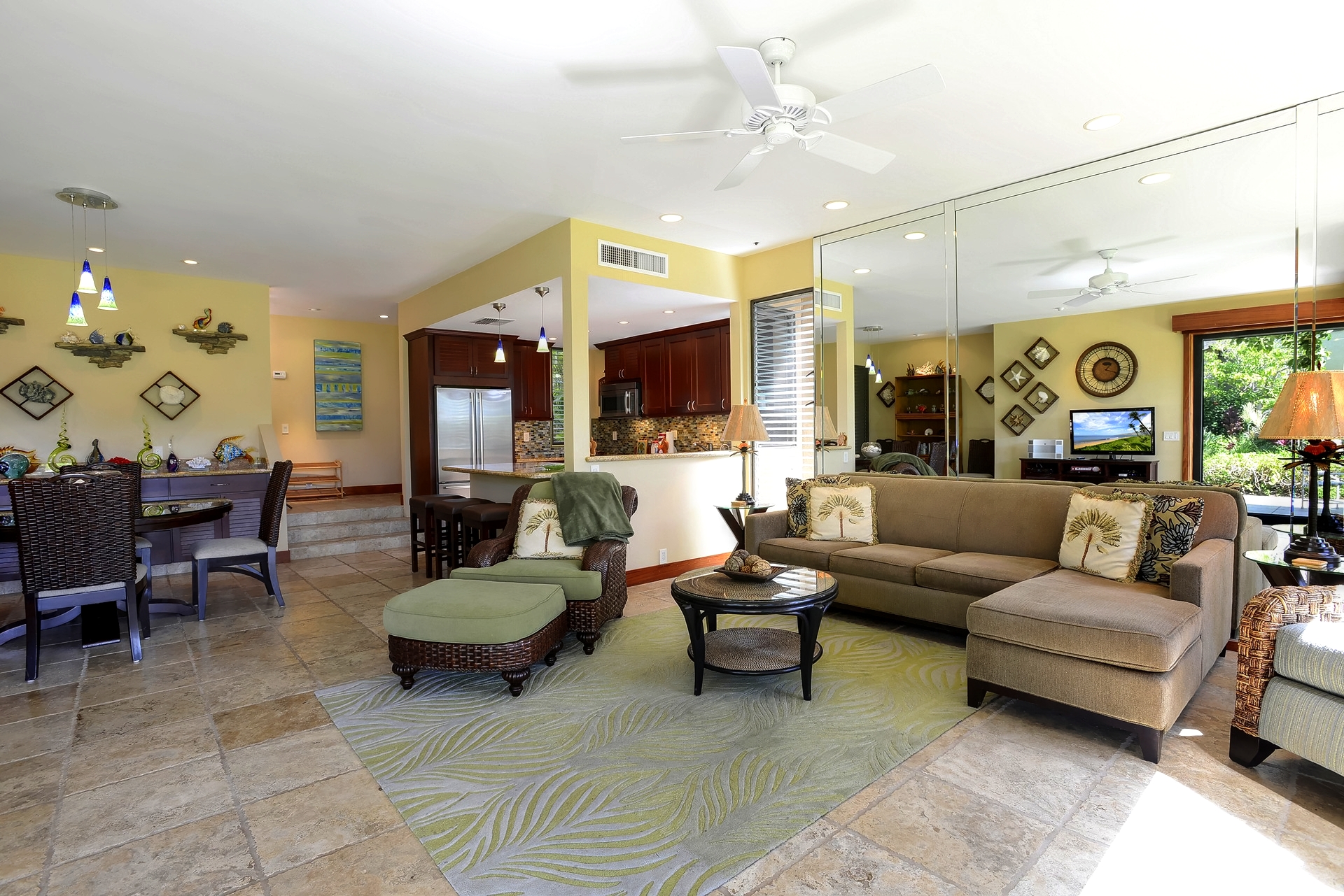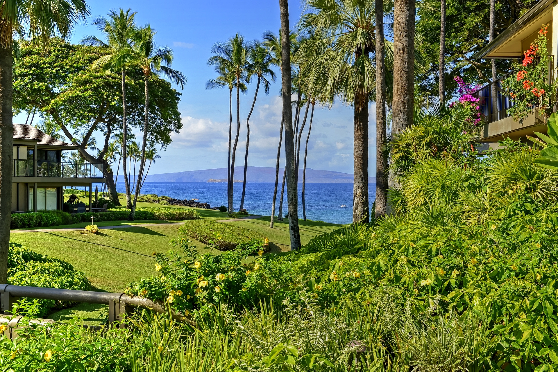 Ideal for families, couples and friendly get-togethers, the beautifully appointed one-, two- and three-bedroom condominiums offer spectacular ocean or garden views and luxury amenities including weekly housekeeping and concierge service. Each condo has a private lanai, is tastefully furnished and has a fully equipped kitchen with dishwasher and microwave as well as a washer/dryer, cable TV and A/C.